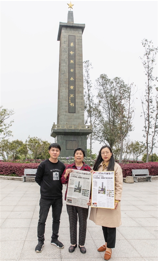 “怎么能不留着呢,多珍贵的纪念啊!”见到记者,林桂清高兴之余,非常激动。“背一块砖,平一块地!当年真的是一步步将这里建设起来的。”林桂清读着当年的报纸,深有感触。她说,革命烈士纪念碑建好之后,周边并未整体改造。在村民看来,这里仍是一座“癞头山”。林桂清当年经常抱着小孙子一起上山转悠,看着纪念碑周边荒草丛生,各种毒虫出没,她心里不畅,就利用周边可以用的石板、石块,在纪念碑前慢慢铺起一块平地。