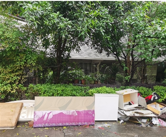 人民西路西延某住宅小区,大件垃圾乱堆放。
