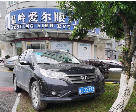 前阶段,省暗访组巡查发现中华路月河桥上存在盲道断头路现象,此次督查发现,这个问题依然存在。月河桥沿河绿化带上,有辆轿车停在那儿。