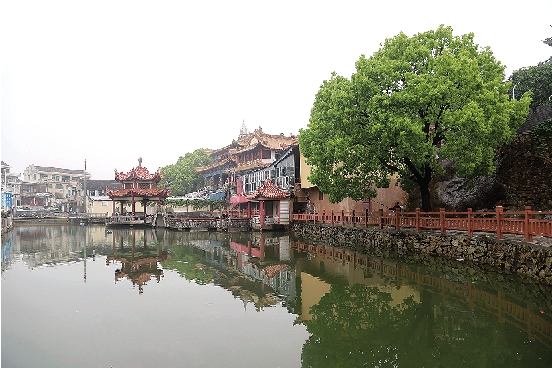 旧时,翠屏山上的文峰塔与鹤湖相映成趣,还是松门十景中的一景“湖心射塔”。