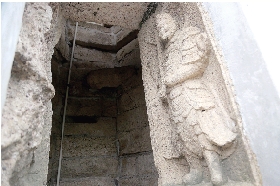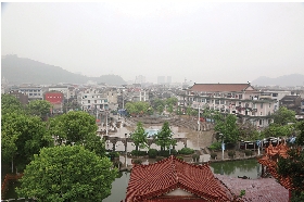 到翠屏山上瞻仰文峰塔,可以从南、北、中三条路上山,其中中间这条路就是从财神庙前经过上山。翠屏山很矮,没几步就到山顶了。若从南边上山,则经过近年用青砖重砌的雉堞(城墙),南边山上有一座石质凉亭“幸福明亭”。