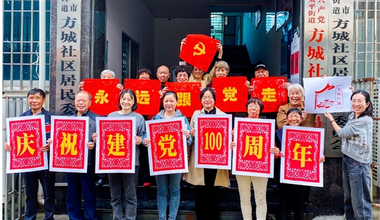 以剪纸艺术为媒,感受红色精神。4月27日下午,太平街道方城社区组织社区党员,在剪纸艺术非遗传承人陈巨中老师的指导下,剪出“庆祝建党100周年”“永远跟党走”等剪纸作品,向中国共产党建党100周年献礼。 记者 徐伟杰/文 通讯员 王彬彬/图