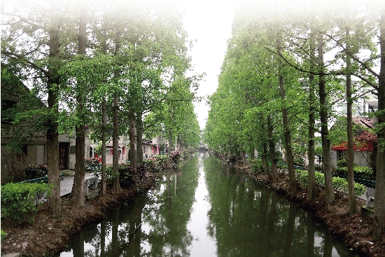 至于现在人工河两边高高的水杉,是河道挖好后就栽种上去的,树苗是从太湖仰天湖林场买来的。因为当时大队驻有工作队,有仰天湖林场的书记杨小冬(音)、文化馆的应夏方(音),还有后来在温岭广电局工作的沈修培(现已故世)等人,工作队建议种水杉,两边各种两排。两边现在只有河边的一排了,另一排建房后就拔了。