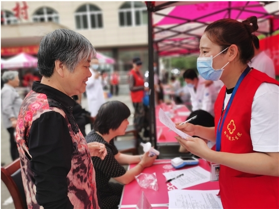 市计生协会工作人员向村民发放了避孕药具和计生协会宣传资料,为妇女提供生殖健康咨询和优生优育指导。市计生协会、镇计生协会、台州市肿瘤医院、温岭市妇保院、新河镇卫生院等单位通过悬挂横幅、发放宣传资料和宣传品、免费体检等方式,向群众宣传“优生优育”“免费婚前医学检查”“健康素养六十六条”等各类卫生健康知识。各家医院的医生还为村民提供了量血压、测血糖、测肺功能等免费健康体检,并耐心解答他们的问题。王大爷一大早就来了,测出血压偏高,医生提醒他要加以重视。