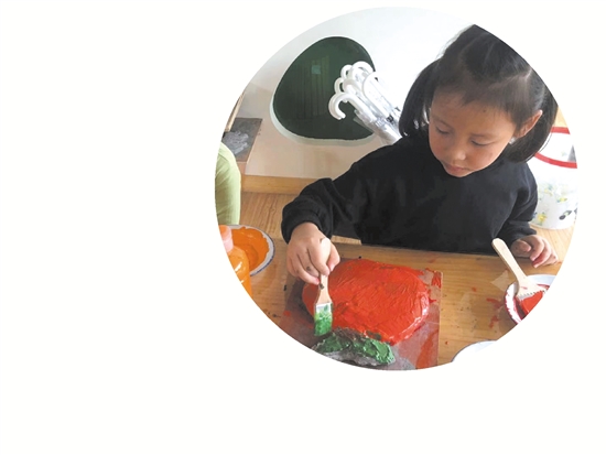浓厚的乡土味,是走访坞根镇幼儿园的直观感受。在把握幼儿园一日常规活动的基础上,幼儿园结合坞根镇的乡土资源,弘扬红色文化,设计红色园本课程。在持续探索中,灰雕课程应运而生。灰雕室里,孩子们每人拿着一把铲子,对着底板细细雕琢,不一会儿,简单的圆形、方形跃然纸上,刷上颜料,就成了漂亮的草莓、胡萝卜。谢海平说,灰雕是坞根的乡土文化,他们希望通过灰雕制作,让孩子们了解家乡,为家乡感到骄傲。