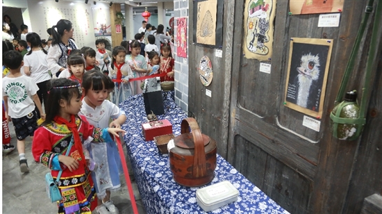 来到位于地下室的“老物件展示区域”,孩子们仿佛踏上了一场奇幻的“穿越”之旅。老相机、老照片、老信件、老书籍……橱窗里陈列着诸多充满年代感的老物件。这些承载了老一辈生活印记的老物件如同“老朋友”一般,无声地诉说着中国共产党百年来的奋斗历程,激励着孩子们从党的百年伟大征程中汲取智慧和力量,感恩现在所拥有的美好。