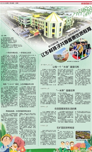 如今的高桥幼儿园已完全找不到当年破败的痕迹。两幢色彩斑斓的教学楼,绿色的操场,户外活动场地上放着大中型玩具。幼儿园还设置了玩水区、玩沙区、陶泥区。同时,幼儿园还拥有空中种植园、勤耕园、百果园等各类实践场所。