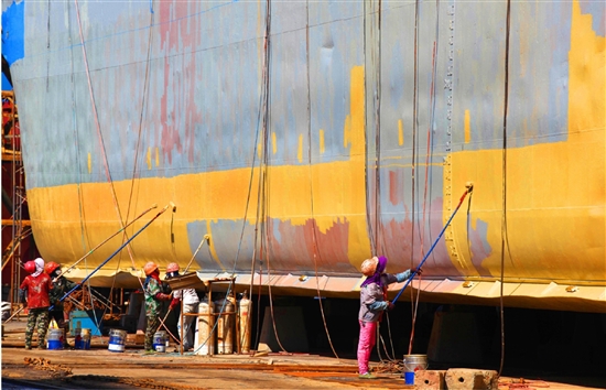 6月6日,松门合兴船厂维修船坞一片繁忙,工人师傅正在给渔船做电焊加固、更换部件、除绣涂漆等维修保养工作,做好安全检修和隐患整改,做到“渔休船不休”。 记者 刘振清摄