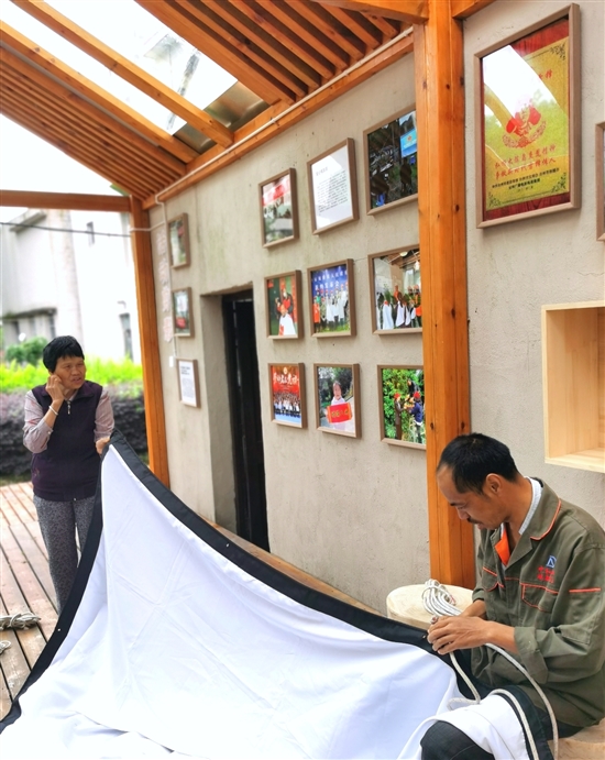 城南镇(寨门村)新时代文明实践示范点建立于2019年11月,由张金华的老屋改建而成,这里集中展示城南镇各志愿服务队伍的风采和新时代文明实践的成果。同时,这里也是志愿队的便民服务点,定期为周边的老人提供理发、量血压、剪指甲等服务。