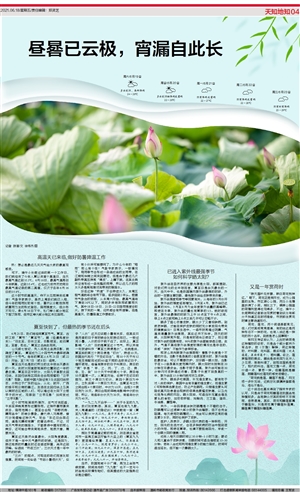 夏至这天虽然白昼最长,太阳角度最高,但并不是一年中天气最热的时候。这是因为,接近地表的热量此时还在继续积蓄,尚未达到顶峰。俗话说“热在三伏”,三伏天才是一年中最热的时候。