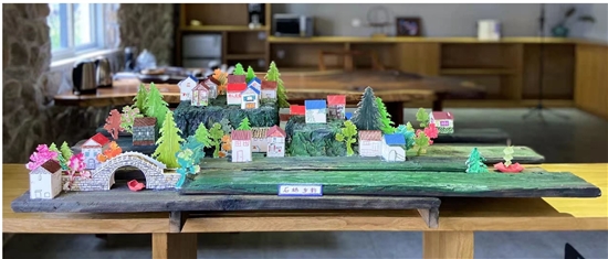 在研学实训活动中,学校还创新形式,充分挖掘地方课程资源,把培训课堂搬到了位于石桥头镇的市三透里文创园。老师们走进“雀舍工作室”,学习扇面裁剪、麻绳编织;走进“不知名陶艺舍”,将一块不起眼的泥土变成一件件极具生命力的艺术品;走进“祥来工作室”,学习并完成场景造型,搭建了美丽的校舍、古朴的石桥、古色古香的小镇。