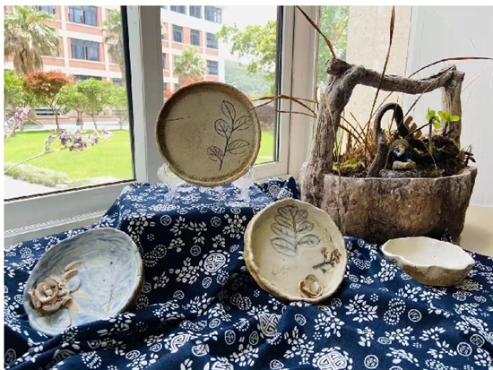 本报讯(记者江倩倩)蓝印花布裁剪的团扇、陶土做成的形状各异的盘子、唯美的布艺装饰……近日,石桥头小学举办了“盛夏的果实”校本培训之劳动教育主题成果展,展出了学校老师设计或制作的场景造型、陶艺作品、布艺作品等,共有38件作品。