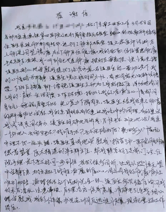 一封感谢信,让我们认识了一位好医生