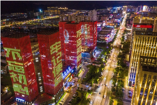 “七一”临近,温岭庆祝建党百年氛围也日益浓厚。近日,建党百年主题灯光秀在城市新区总部经济基地璀璨上演。青商大厦、创业大厦等大楼齐齐亮起炫彩灯光,用光影色彩来庆祝中国共产党建党100周年。