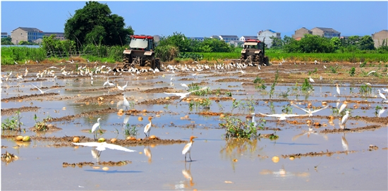 田间鹭鸟伴夏耕