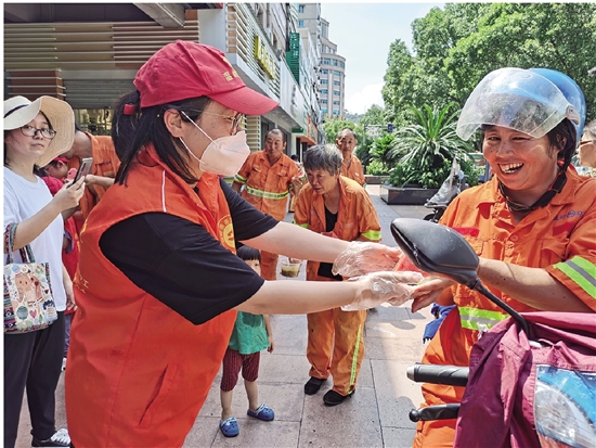 慈善义工的清凉驿站已坚持了8年,高温期间,每周坚持一至两次给环卫工人和露天作业人员送清凉,每年送出清凉在2万份以上。 通讯员 张鲜红摄