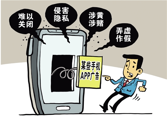 记者调查发现,当前手机APP广告难以关闭、侵害隐私、涉黄涉赌、弄虚作假等问题仍屡禁不止,治理力度不能减弱。