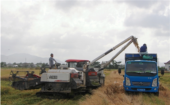 7月21日,在箬横镇百亩坦村的460亩水稻高质高效新技术示范点,种植大户们纷纷进行早稻抢收。为应对台风“烟花”,该镇各管理区、村(居)紧急动员,调派收割机、双排型载货车,帮助农户抢收早稻,力争在台风到来之前将已成熟的1.5万余亩早稻收割完毕,确保农作物损失降至最低。 通讯员 江文辉摄