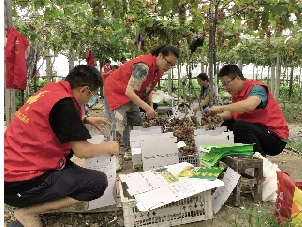 与此同时,志愿者们来到位于新河镇蔡洋村的爱心葡萄基地帮助葡农开展采摘、装箱以及搬运等工作。
