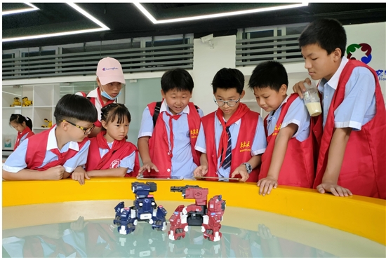 近日,由市青少年宫,箬横镇宣传、团委、妇联、关工委联合举办,市乡村七巧板爱心服务社承办的“童心向党 科创未来——小候鸟看温岭”活动如期而至。来自箬横小学镇北校区、箬横四小的29名外来民工子女走进了市青少年宫,体验了智能童玩空间、对战机器人……感受到l科技带来的愉悦。孩子们还到市新时代文明实践中心学习参观,参加了垃圾分类培训。一天的体验活动,孩子们收获满满。他们说,有了乡村七巧板这个流动课堂,每年的暑假都特别开心,不但开了眼界,还长了见识。