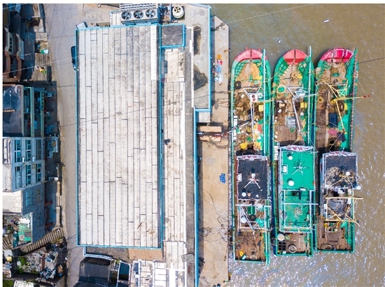 一年当中到了夏天特别忙,外面的气温越高制冰效益越好。眼下正值渔汛,位于石塘镇高升村的海波制冰厂一片忙碌景象,厂外码头的加冰卡位停满了渔船,渔民正在船上给渔船加冰加水忙个不停。记者在工人的带领下走进储冰室,储冰室的温度一般在-7℃,看上去一片“热气腾腾”。进去的瞬间会特别凉快,但没过2分钟就感觉到身体开始发冷。记者看到工人们不断将冰块拖上冰槽,通过履带传送至碎冰机,最后随着管道滑至渔船冰舱内。