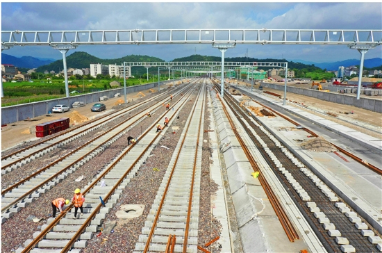 静态验收由中国铁路上海局集团公司组织开展,验收范围涉及工务、电务、电力及牵引供电、信息、房建工程、客服设施、环水保共七个专业工程。图为杭台高铁温岭存车场准备迎接静态验收。