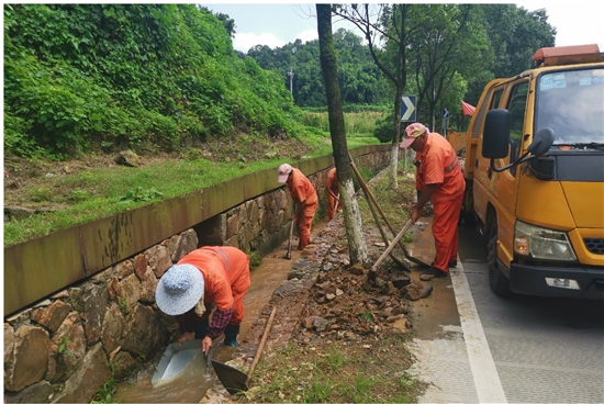 前段时间,雨水不断,垃圾和泥沙淤积边沟。为保障边沟排水通畅,市公路事务中心养护人员加强公路边沟清理,美化道路环境。图为养护人员正在县道竹盖线两侧清理边沟。