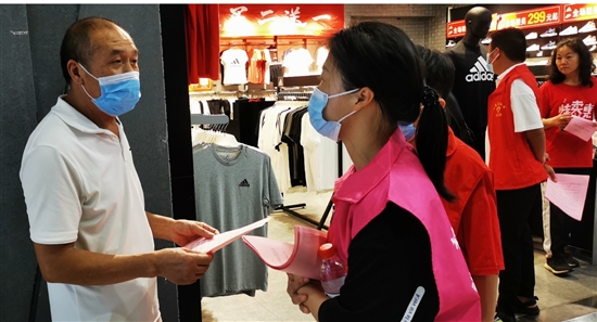 本报讯(记者潘国志文/图)“国内多个地区发生疫情,防控形势严峻复杂,又正值暑期,是旅游、出行、聚会的高峰期,为了您个人及家人的健康,请您务必做好疫情防控,戴口罩勤洗手,非必要不出省。”8月20日,城东街道时代广场内,来自九龙汇社区的6名志愿者手持打印好的《疫情防控:致温岭市民朋友的一封信》,逐店上门提醒。