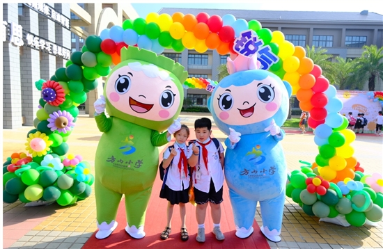 9月1日上午,方山小学举行“爱就一个字”开学仪式暨新生入学仪式。学校用五色气球编织了三座气球拱门,五色代表着“德、智、体、美、劳”五彩少年,三座拱门象征着学校期待培养出大气、锐气、灵气的方山学子。