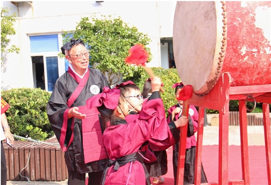 9月3日,滨海镇第二小学为一年级新生举行“开蒙崇善,育德致善”开蒙礼,通过正衣冠、击鼓明志、朱砂启智等传统礼仪环节,让孩子们明白读书的目的和做人的准则,继承和发展国学文化。