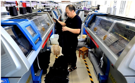 9月6日,在新河镇一家羊毛衫企业的生产车间里,员工正在操作电脑横机织羊毛衫。新河镇是全省重要羊毛衫产业基地,30多家生产企业年产值达2亿元。近年来,企业购置了150台电脑横机,减少一线工人900多人,以提高企业的经济效益。