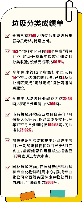 二季度,我市生活垃圾分类工作综合评价居台州市第二,其中城东、城西、城北、大溪、新河、温峤被评为成绩优良镇(街道)。