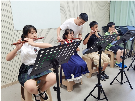 晚托期间,实验小学老师对艺术班的孩子进行艺术指导。