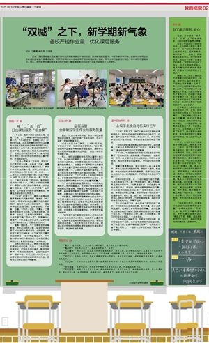 “双减”指的是减轻义务教育阶段作业负担和减轻校外培训负担。按照教育部的要求,今年秋季开学开始,全国中小学将在义务教育阶段全面开展课后服务,并要求结束时间与当地正常下班时间相衔接。目前,我市小学已全部实行晚托,初中学校开展晚自习。那么,我市各学校课后服务是如何开展的?都有哪些服务内容呢?记者为此走访了几所学校。