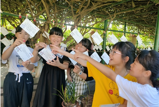 如何庆祝教师节呢?箬横三小六年级学生倡议,把想对老师说的话写在卡片上。全校千余名学生纷纷响应。9月9日上午,学生们制作了各式小卡片,祝老师节日快乐,并集中到校运动场里集体向老师致敬。
