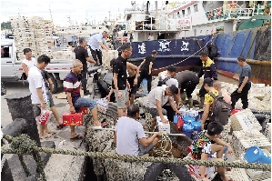 渔船可以出海了,一些渔运船也跟着起锚,他们的船上放满了塑料渔盘,以保证继续在洋面作业的渔船,其渔获物能够应收尽收,实现丰产丰收。