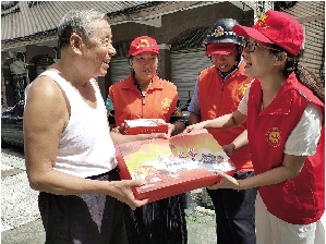 9月14日,慈善义工太平分队把专门定制的爱心月饼送给太平十多名退伍老兵,提前祝他们中秋节快乐。为了让退伍老兵、失独老人、孤寡老人过一个有意义的中秋佳节,市慈善总会专门定制了1000盒爱心月饼,将在中秋节到来之前送到他们手中。