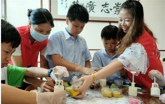 近日,在箬横镇群团服务站内,镇妇联、市乡村七巧板爱心服务社的志愿者们为当地外来民工子弟学校的孩子们精心准备了一场迎中秋亲子月饼制作活动。
