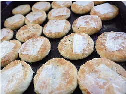 厅堂里摆满各种传统糕点,糖霜饼、千层酥、冰雪酥、小糕干、油柱、橘红糕、核桃酥、芝麻薄饼、六角酥……还有不少糕点,我们都叫不上名字。正在我们张望之际,来了两名中年女子,看样子是常客,她们径直走进烘焙间,提上十多袋糕点,心满意足地走了。临走,还不忘招呼,下个星期还会来。