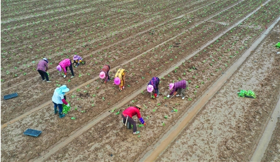 9月16日,东浦新塘,箬横镇粮食专业合作社社员正在栽种西蓝花。