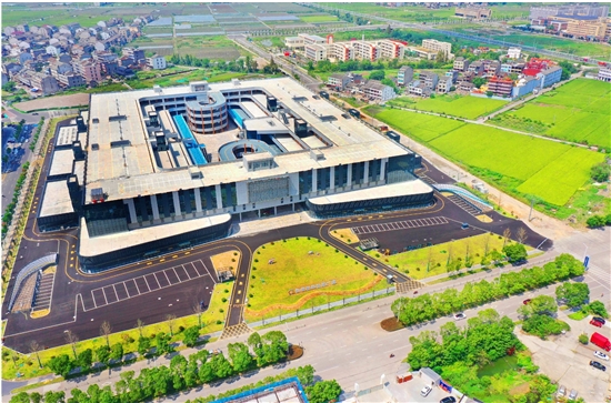 9月19日,无人机镜头下,总建筑面积12万平方米的浙江东南汽车城像一座“航母”屹立在市区中心大道东侧。东南汽车城日前已竣工等待投用。