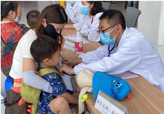 “医生,我孙女刚出生一个星期,黄疸还没完全退,麻烦帮我看看。”新生儿科医生江珊珊和产科医生陈文敏抱过孩子认真地检查起来,检查后向家属详细讲解了相关注意事项。“医生很耐心,说得也很仔细。”家属称赞道。