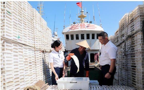 本报讯(通讯员王健 杨旭晨)9月23日,温岭农商银行渔业金融服务专员来到国家一级渔港——石塘渔港码头,正值浙岭渔运20038船满载而归,码头上一片忙碌丰收的景象。据了解,该渔船出港6天,共收获鲳鱼、带鱼、虾、蟹等各类海货8000余筐。船长老林笑着说:“感谢温岭农商银行为我提供组合贷款支持,贷款利率低,而且随借随还。有你们为我出海‘保驾护航’,才有这次大丰收。”除了渔民与海鲜收购商,很多市民也早早地守候在码头,渔船一靠岸,便迫不及待抢购鲜活的海鲜,就等“一蓬烟火饭鱼船”,与渔民共同享受丰收的滋味。