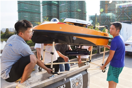 该全自动多任务无人艇为当下国内较为先进的智能无人艇,具备动态巡查、影像实时传输、后台数据分析、自主导航和自动避障等功能,其搭载的多参数水质检测仪、声呐等设备可对水下水质、污染源暗管进行排查,实现了我市巡河智能监测从点到面的大突破。 记者 陈祥胜摄