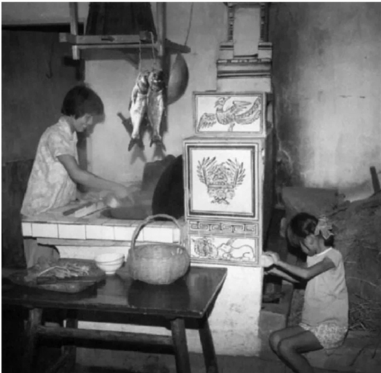 外婆家厨房的样子,总让我觉得新奇,我时常拿出这张照片看了又看,脑子里时不时地冒出外婆烧饭时的情形。妈妈告诉我,外婆需要收集秋天的稻草和晒干的树枝作为柴火,用铁钳把柴火放进灶膛点柴生火。因为没有煤气易燃,她一边用扇子拼命扇,一边得注意灶膛的柴火。要是不注意,可能里面的火会灭掉,又得重新生火。那时候,烧火也是一门技术。更糟的是厨房里没有抽油烟机,锅里的油烟和灶膛里的火烟都会把人熏得泪流满面。