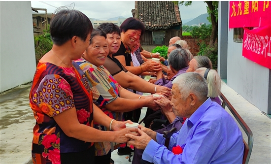 日前,石桥头镇土坦新村文化礼堂开展“乡村十礼——九九重阳礼”活动。90周岁以上的老人欢聚一堂,村民们为老人们戴上大红花,由晚辈代表为老人们敬茶送祝福。