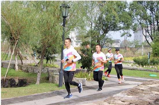 10月22日早上,5名长跑运动爱好者在箬横镇文乐健康主题公园内跑步。他们向市民展示正确的跑步姿势,引导大家多多晨练,跑出健康,跑出活力!据了解,箬横镇是“浙江省体育强镇”,文乐公园是该镇建成区集普法宣传、健身运动、文娱休闲于一体的最大室外公共活动场所,拥有常驻文体社会组织团队20余支,日均晨练市民达近千人次。 通讯员 江文辉摄