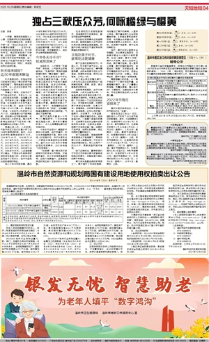 “何须浅碧轻红色,自是花中第一流”“独占三秋压众芳,何咏橘绿与橙黄”……古往今来,吟咏桂花的诗词有很多。作为我市市花,桂花树在各地广为种植。此时的温岭,满城飘香。或许是今年开花时节特别晚,这一拨铆足了劲盛开的桂花不惧风雨,保持长时间“待机”,持续地给我们送来秋香。
