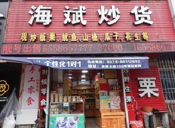 开在购物中心南门,15年都在同一个地方,这家叫作“海斌炒货店”的炒栗子不少老温岭人都吃过。