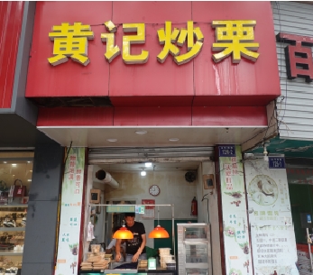 贪吃街靠近人民路这头,有一家风味独特的炒栗子店。最早在路口摆着小摊,一摆就是十多年,直到这些年搬进店面里。